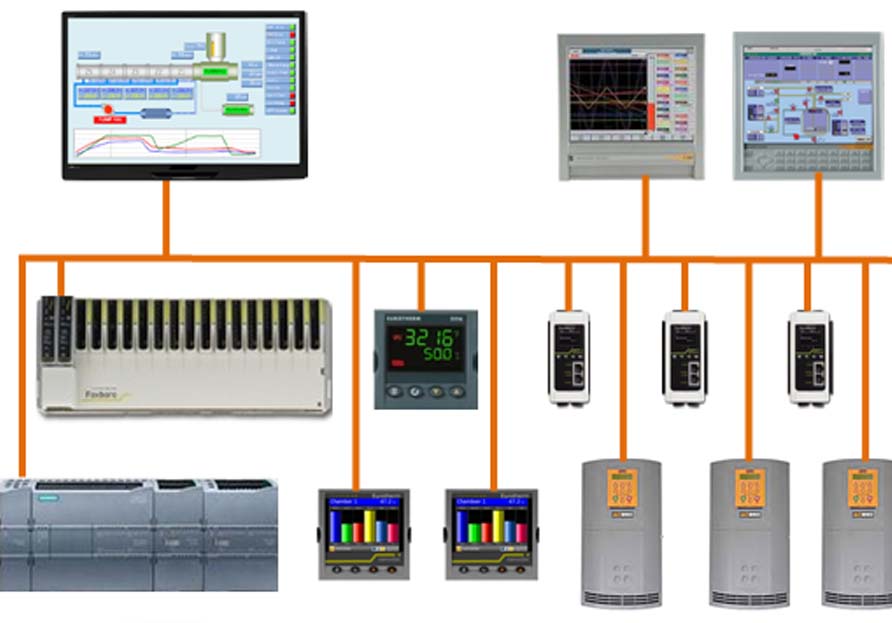 Intelligent transducers, discrete instruments, PLCs and SCADA can all be brought together via analogue and digital signals, serial and network comms, to provide the client with a clear overview of the plant at his SCADA or / and a comprehensive control strategy.